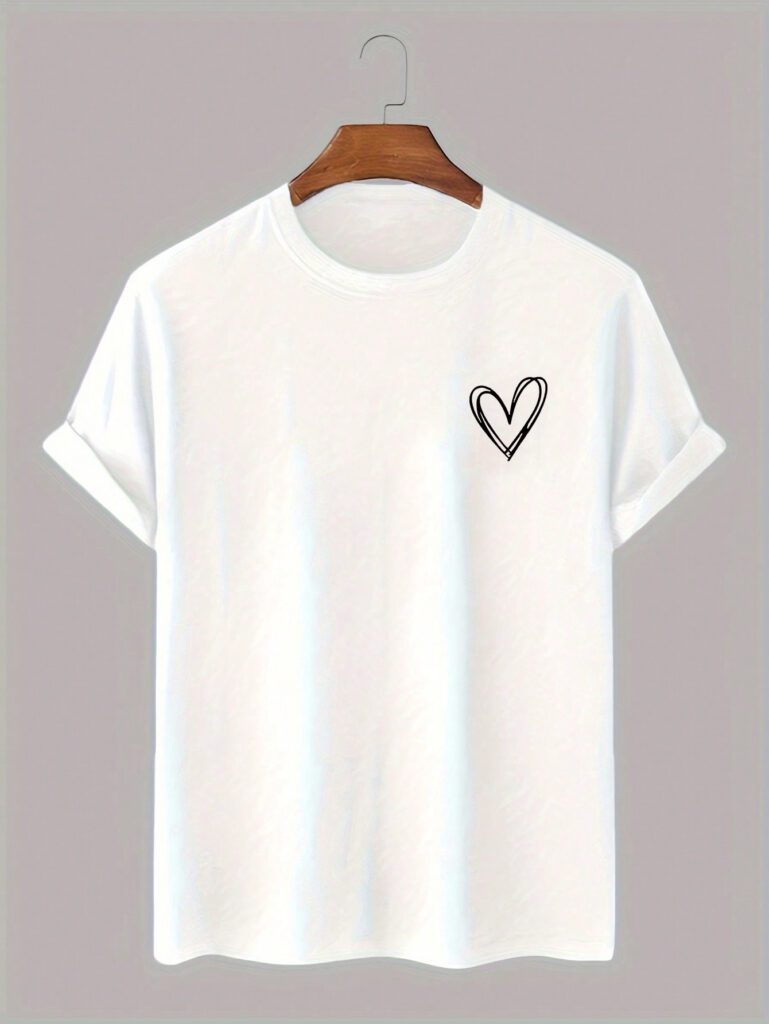 T-shirt à manches courtes à encolure ronde et imprimé cœur simple pour hommes