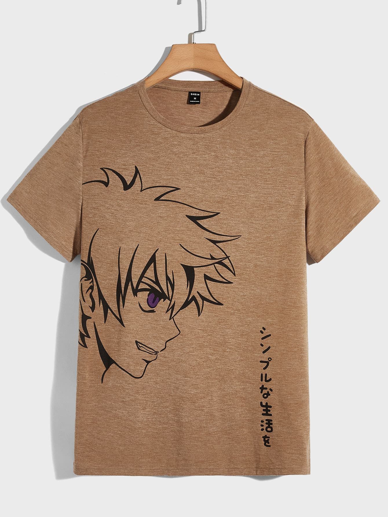 Manfinity UrbanChill T-shirt graphique pour hommes avec lettres et chiffres japonais de style anime