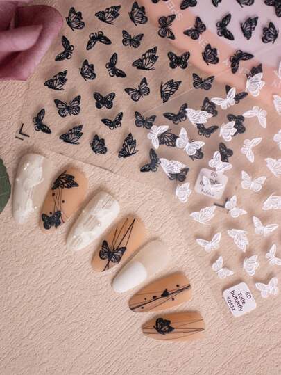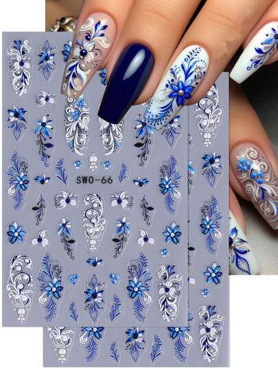 2 pièces Autocollants d’art pour ongles décalques 5D gaufrés à motifs de fleurs bleues. Designs d’art pour ongles avec fleurs dégradées, motifs de vignes et texture de pétales. Feuilles de recouvrement complet pour décoration des ongles. Accessoires de manucure.
