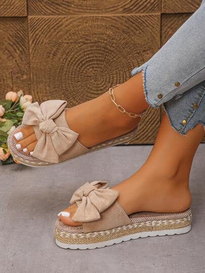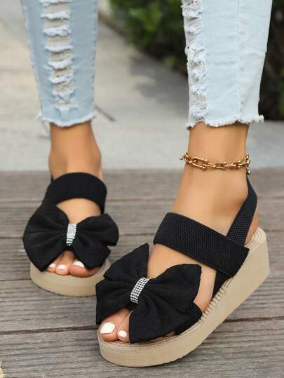 Nouvelles sandales à talons hauts pour femmes, avec bride en croix, nœud papillon, plateforme compensée, semelle épaisse, grande taille, parfaites pour les vacances d’été et les activités de plein air, Valentin