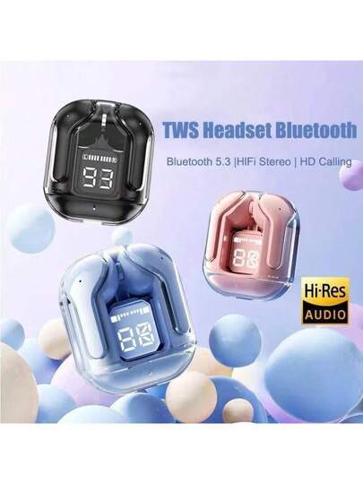 NOUVEAU Casque Bluetooth sans fil TWS Écran numérique transparent Stéréo Écouteurs Bluetooth Casque sans fil Écouteurs à affichage numérique LED pour tous les smartphones