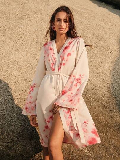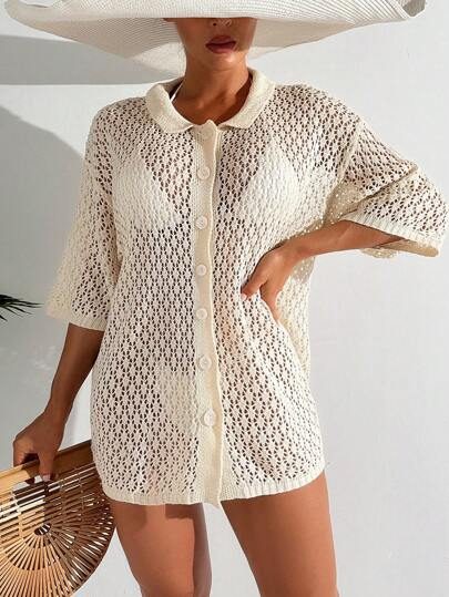 SHEIN Swim Kimono simple et unicolore en tulle pour un port quotidien en été, pour femmes