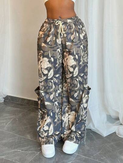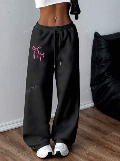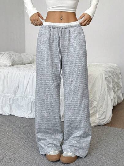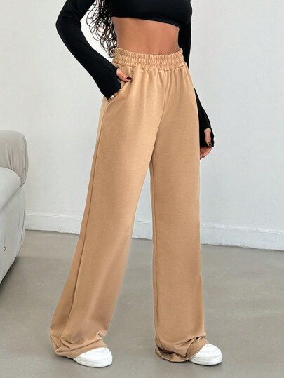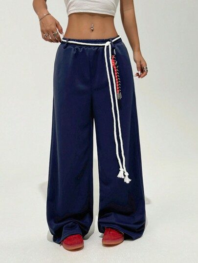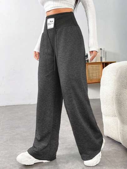 SHEIN EZwear Pantalon de jogging à taille coulissante avec lettre appliquée, jambes larges, tenue d’été