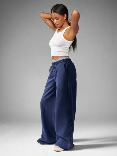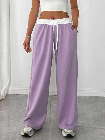 SHEIN EZwear Pantalon de jogging décontracté ample pour femmes avec cordon de serrage à la taille et poches, style blocs de couleurs