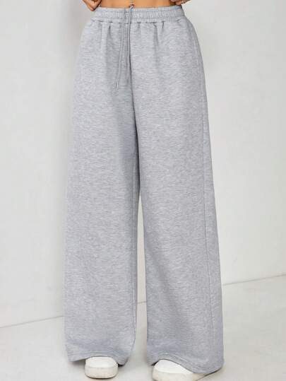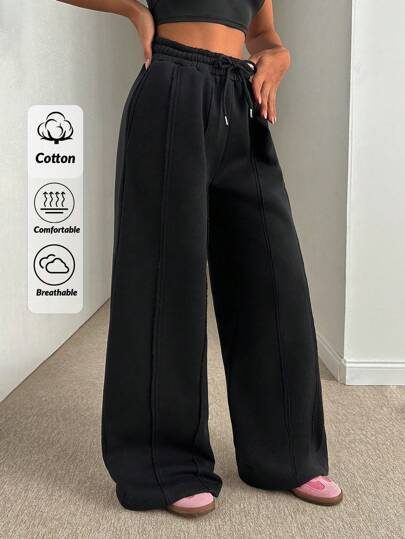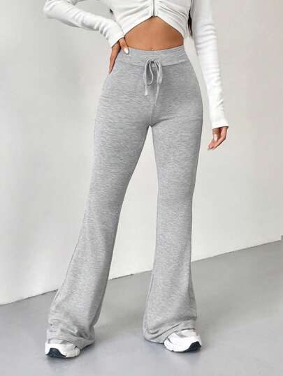 SHEIN EZwear Pantalon évasé décontracté et quotidien pour femmes, unicolore de couleur unie avec cordon de serrage