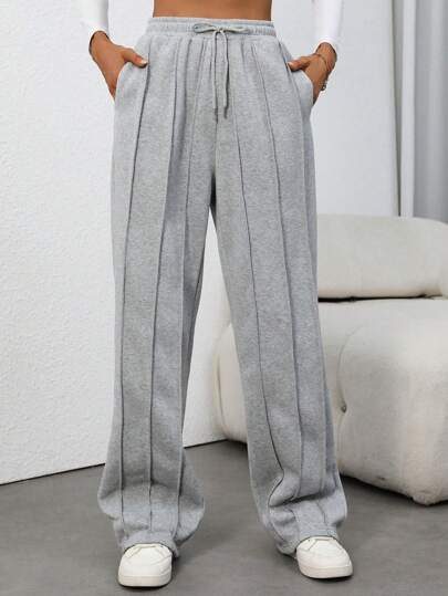 SHEIN EZwear Pantalon de survêtement droit avec détail de couture en galet