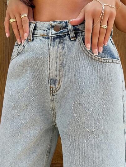 SHEIN JEAN DROIT TAILLE HAUTE BLEU CLAIR AVEC DÉTAILS D’ÉTOILE