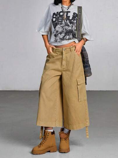 RueChic Jeans cargo à jambes larges délavés et déchirés de style casual