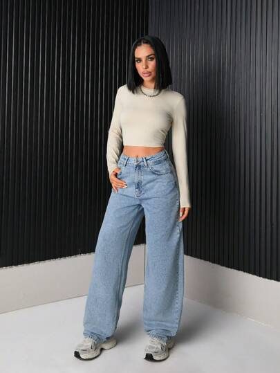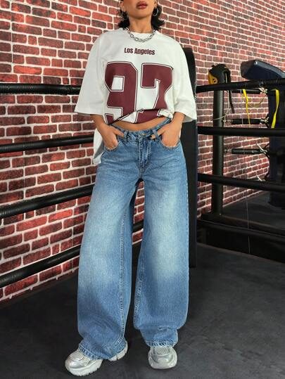 SHEIN Jeans décontractés pour femmes, coupe droite ample avec taille basse