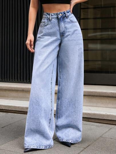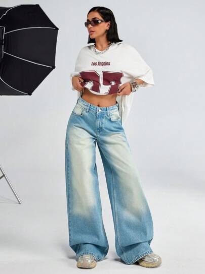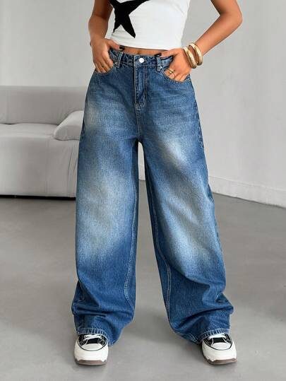 SHEIN Jeans amples et décontractés lavés pour femmes. Vêtements femme, ensembles d’été femme, vêtements d’été femme, vêtements femme, jeans femme Y2K, jeans femme grande taille