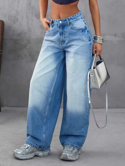 SHEIN Jeans en denim ample avec poches, style casual et polyvalent pour femmes