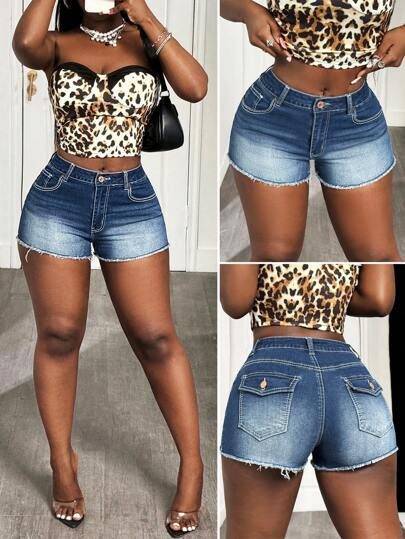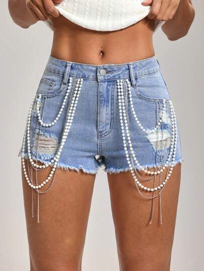 SHEIN Tall Short en jean taille haute déchiré à ourlet effiloché