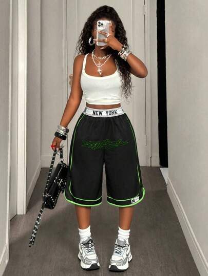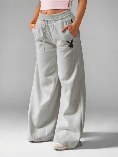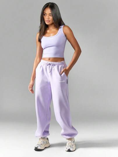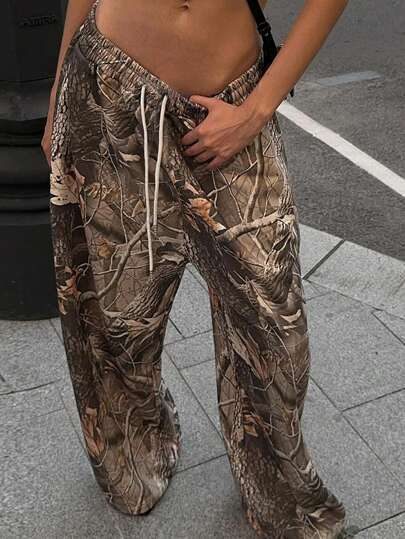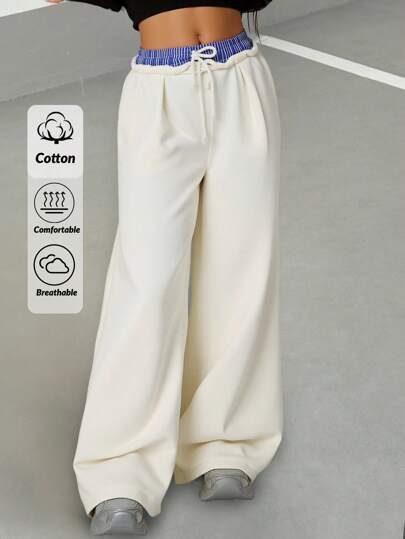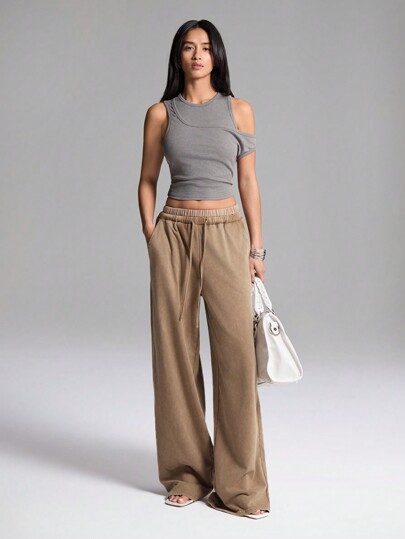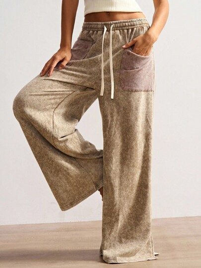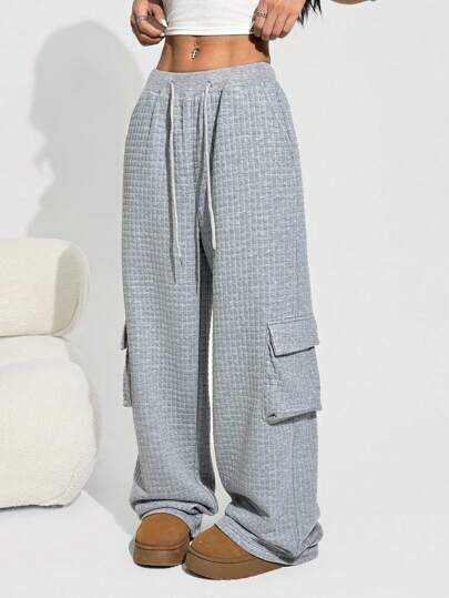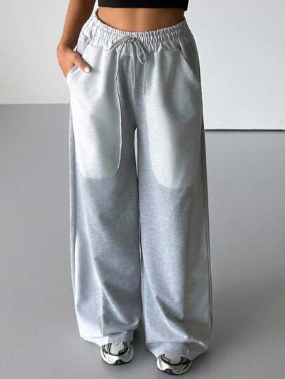 SHEIN Pantalon de survêtement ample à jambes larges avec cordon de serrage à la taille et poches, décontracté pour femmes
