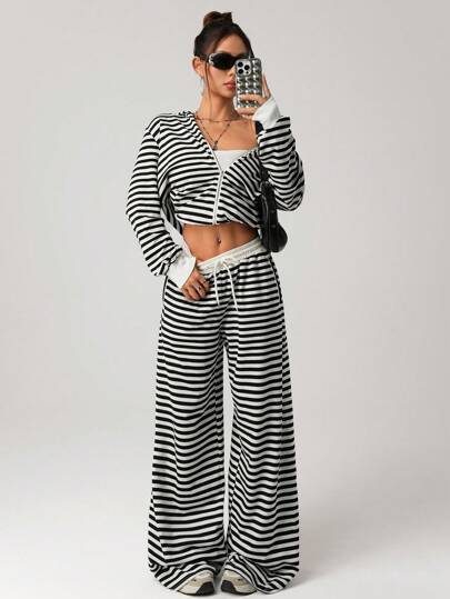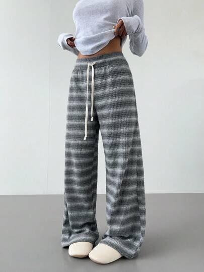 SHEIN BASICS Pantalon de survêtement ample en tricot rayé coloré et décontracté pour femmes