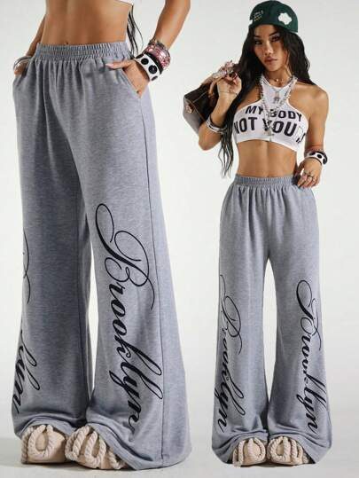 StreetHx Pantalon de survêtement casual d’été pour femme streetwear avec imprimé lettre