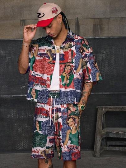 AXEPEAK 2 pièces Ensemble chemise à manches courtes ample et décontractée et short à taille élastique et jambes droites pour hommes