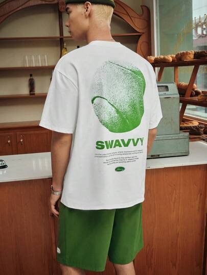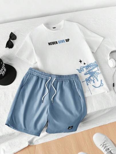 SWAVVY 2 pièces Ensemble t-shirt à manches courtes décontracté et lâche tricoté et short à taille élastique et jambe droite pour hommes