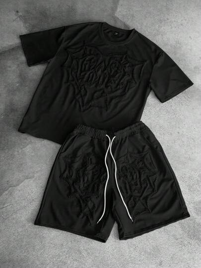 Ensemble de t-shirts réguliers à manches courtes avec imprimé lettres sur tissu gaufré pour hommes
