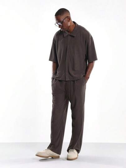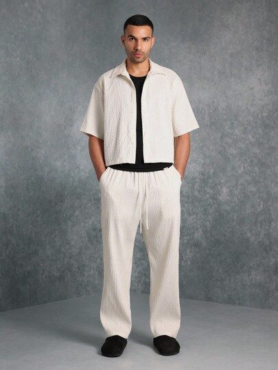 SUMWON Ensemble de luxe composé d’une chemise boutonnée à col texturée côtelée et d’un pantalon ample, style de rue urbain pour l’automne et l’hiver