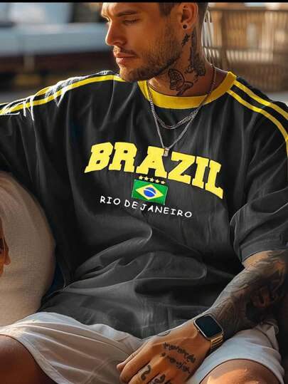 T-shirt ample à manches courtes pour hommes avec imprimé | Design élégant | Indispensable pour l’été | Facile à assortir, mettez votre style en valeur