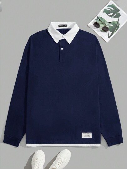 SWAVVY Homme Polo À Applique Lettre 2 en 1