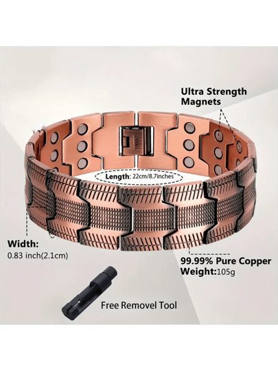Bracelet en cuivre 99,99%, aimant puissant 3X, bracelet pour hommes, extra large et long, style punk vintage, idée de cadeau cool pour les amis ou la famille, excellent pour Noël