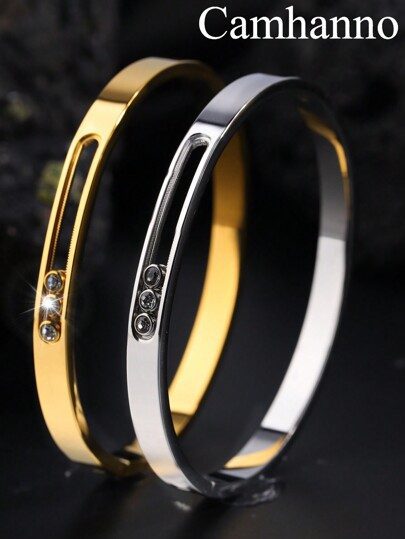 Camhanno 1 pièce Bracelet coulissant élégant simple en acier inoxydable neutre à trois diamants avec accessoires de fête pour vêtements de tous les jours Cadeau