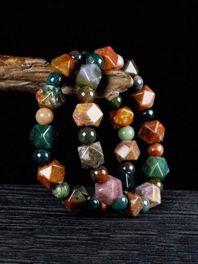 1 pièce Bracelet chanceux délicat rétro en agate naturelle de 8mm pour hommes femmes Yoga Méditation Bijoux estivaux