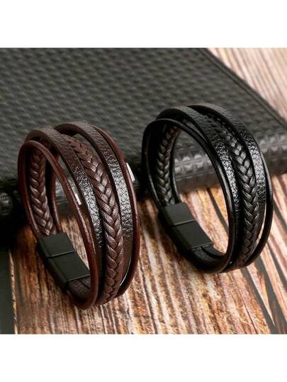 Bracelet multicouche pour hommes, bracelet de poignet décontracté avec fermoir magnétique en alliage de zinc tressé fait à la main