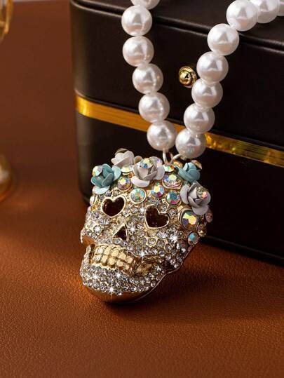 1 pièce Collier pendentif à la mode de style hip-hop avec crâne, fleur et fausse perle pour hommes, Saint-Valentin