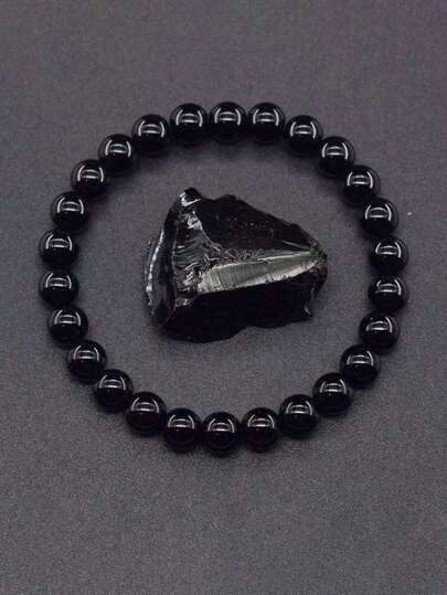 1 pièce Bracelet de perles en onyx noir pour homme Bracelet en obsidienne naturelle noire brillante Bijoux de yoga et de méditation 4 6 8 10 mm