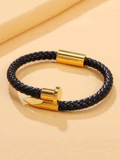 Bracelet multicouche pour hommes, bracelet de poignet décontracté avec fermoir magnétique en alliage de zinc tressé fait à la main