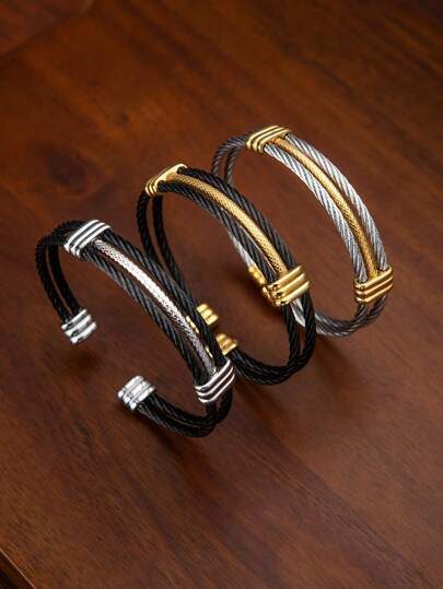 1 pièce Bracelet manchette ouvert en câble d’acier inoxydable pour homme, accessoire personnalisé de conception minimaliste, convient pour un port quotidien ou un cadeau pour petit ami