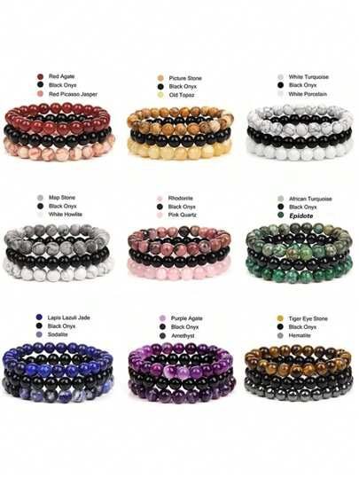 Ensemble de bracelets en pierre naturelle 3 pièces / set, bracelets en perles de lave, d’hématite et d’œil de tigre pour hommes pour une protection spirituelle des bijoux pour femmes et hommes