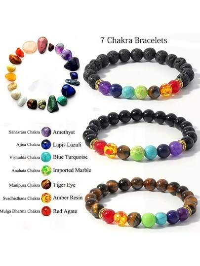 Naturel 7 bracelets Bracelets yoga Équilibre Perles Élastique Bracelet Homme À Pierre Naturelle Méditation Bijou Cadeaux