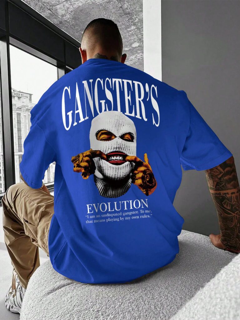 Manfinity Dauomo T-shirt décontracté d’été à manches courtes à encolure ronde imprimé de personnages pour homme avec masque facial à slogan
