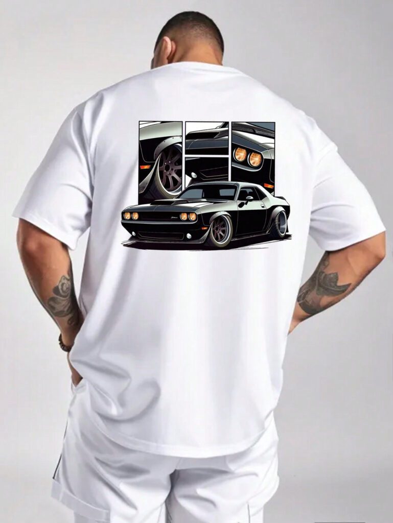 T-shirt d’été décontracté pour homme à manches courtes avec imprimé de voiture, col rond