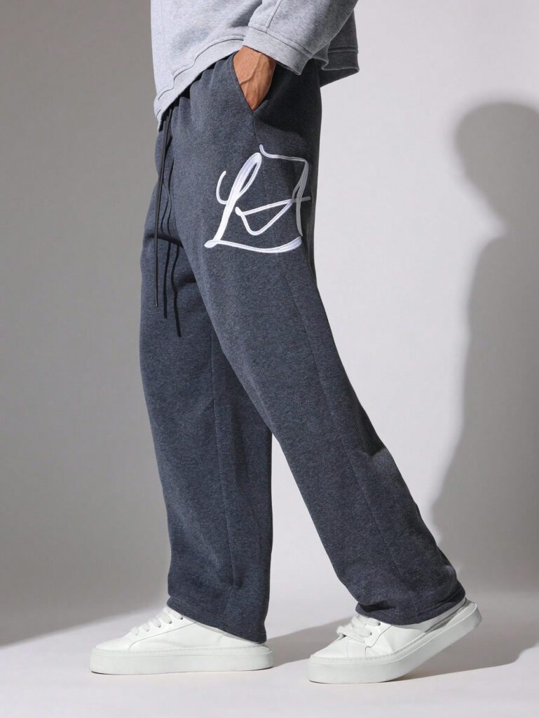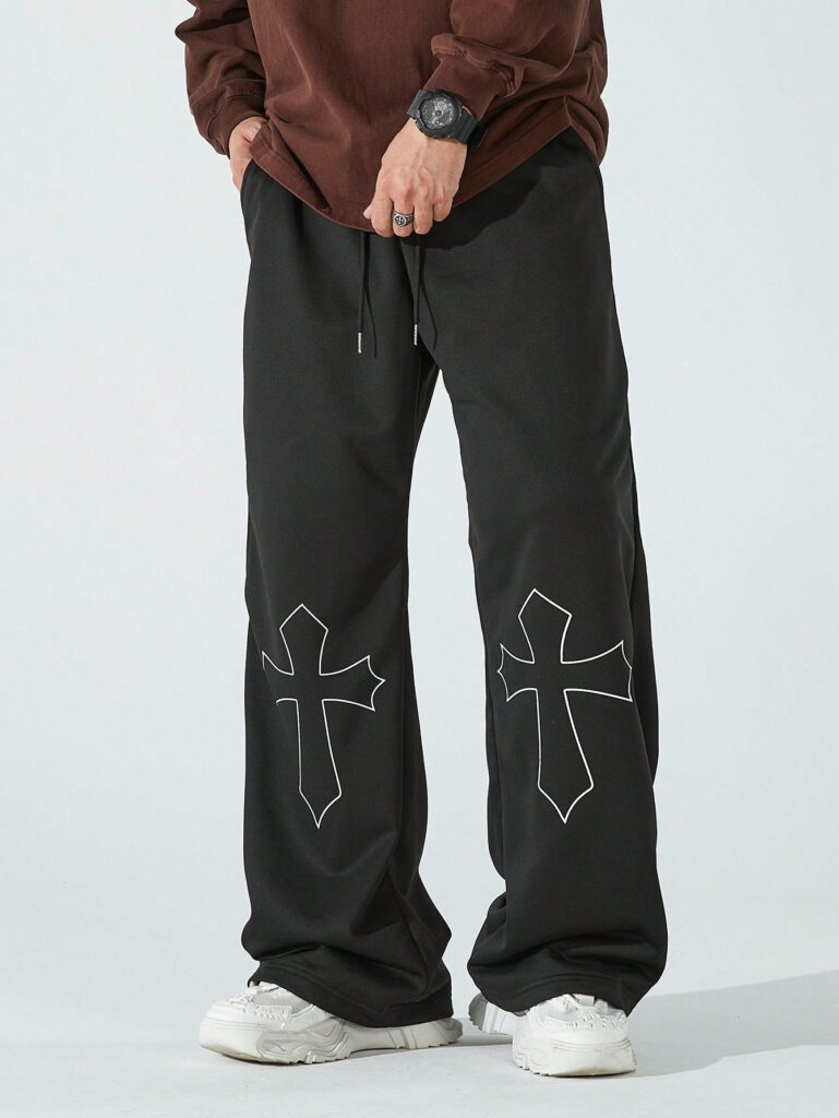 SUMWON Pantalon de survêtement à entrejambe tombante avec cordons et motifs brodés