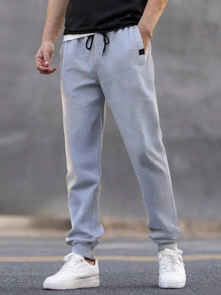Manfinity Hypemode Pantalon de survêtement pour homme avec poches en biais, taille élastique avec cordon de serrage, pantalon de survêtement uni pour une sortie basique avec papa
