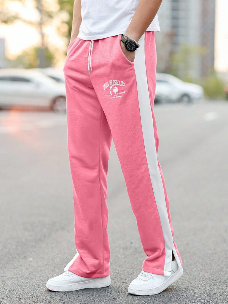SUMWON Pantalon de survêtement coupe évasée avec fente et imprimé graphique