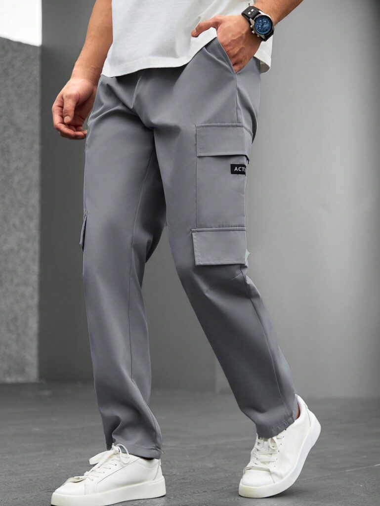 Manfinity Hypemode Pantalon décontracté pour hommes en couleur unie avec patchwork et imprimé lettres