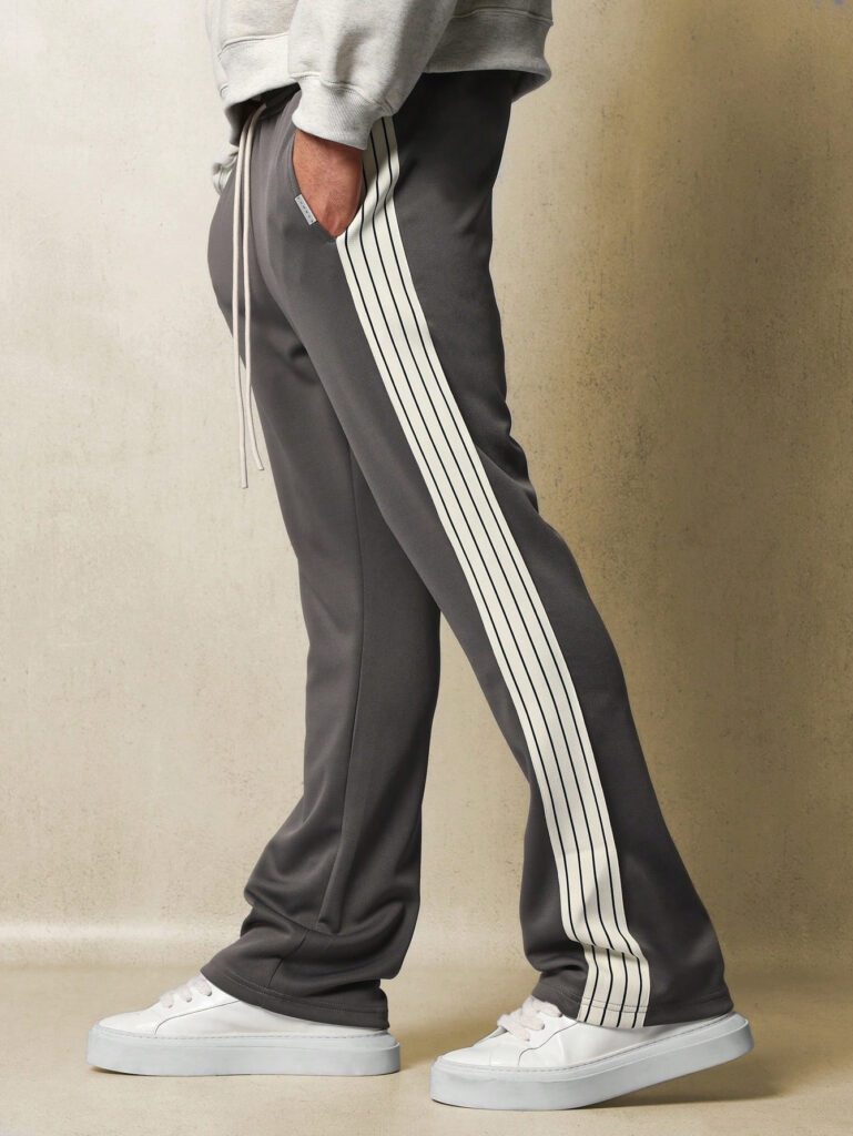 SUMWON Pantalon de survêtement avec détail de bande latérale et cordons de serrage, coupe évasée