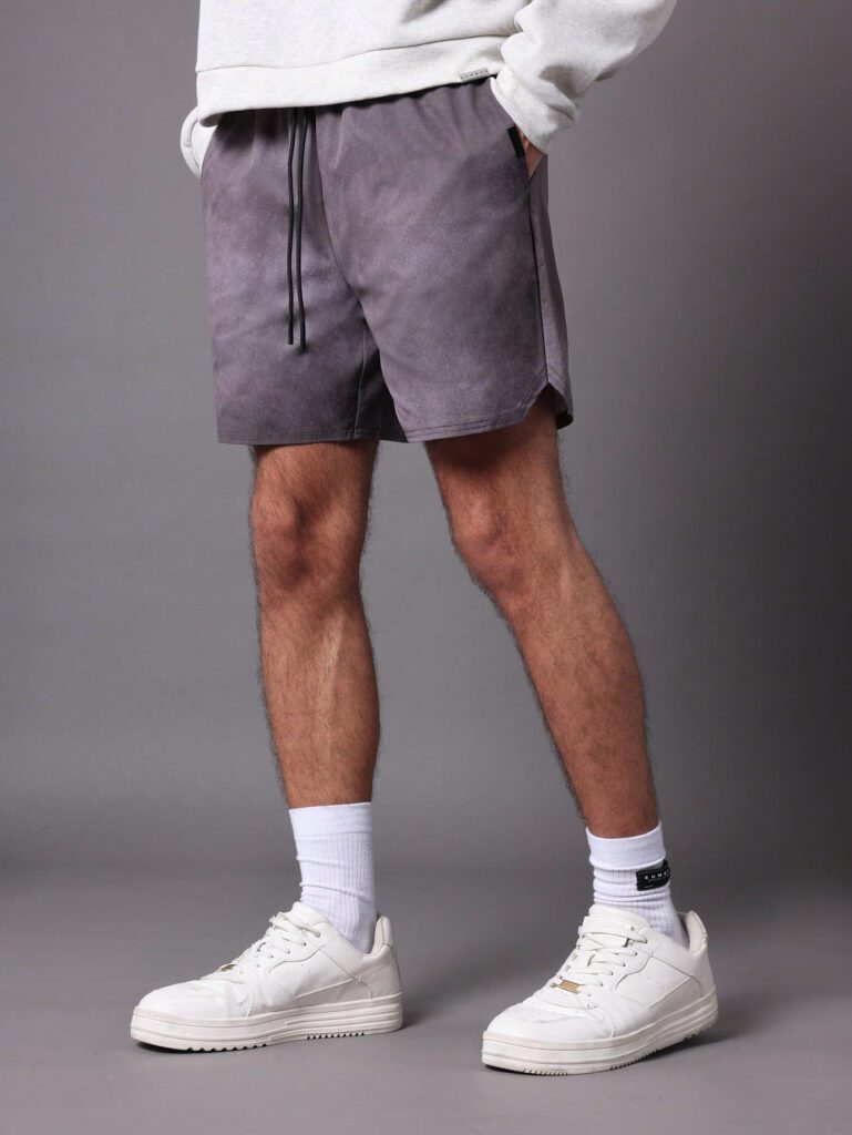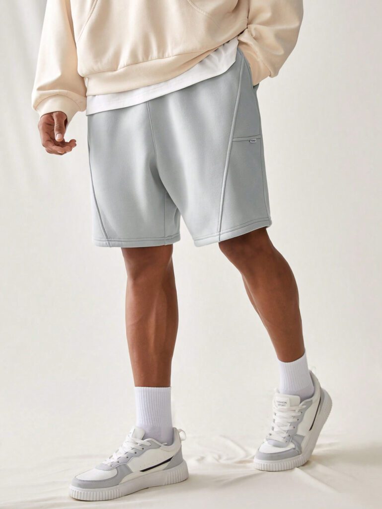 Manfinity UrbanChill Short en maille unie décontracté pour homme avec poches, ample à cordon de serrage jusqu’aux genoux, mode urbaine simple gris clair, cadeau petit ami