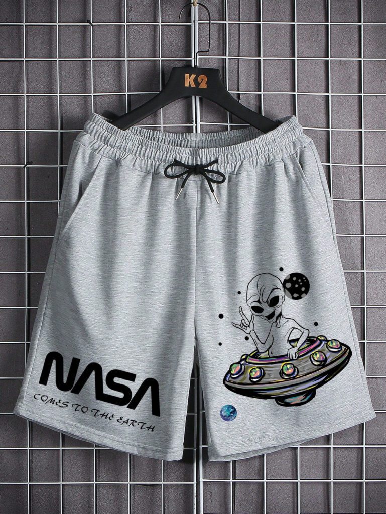 Manfinity EMRG Shorts Pour Hommes À Cordon Et Graphisme Alien Et Lettres Coupe Ample