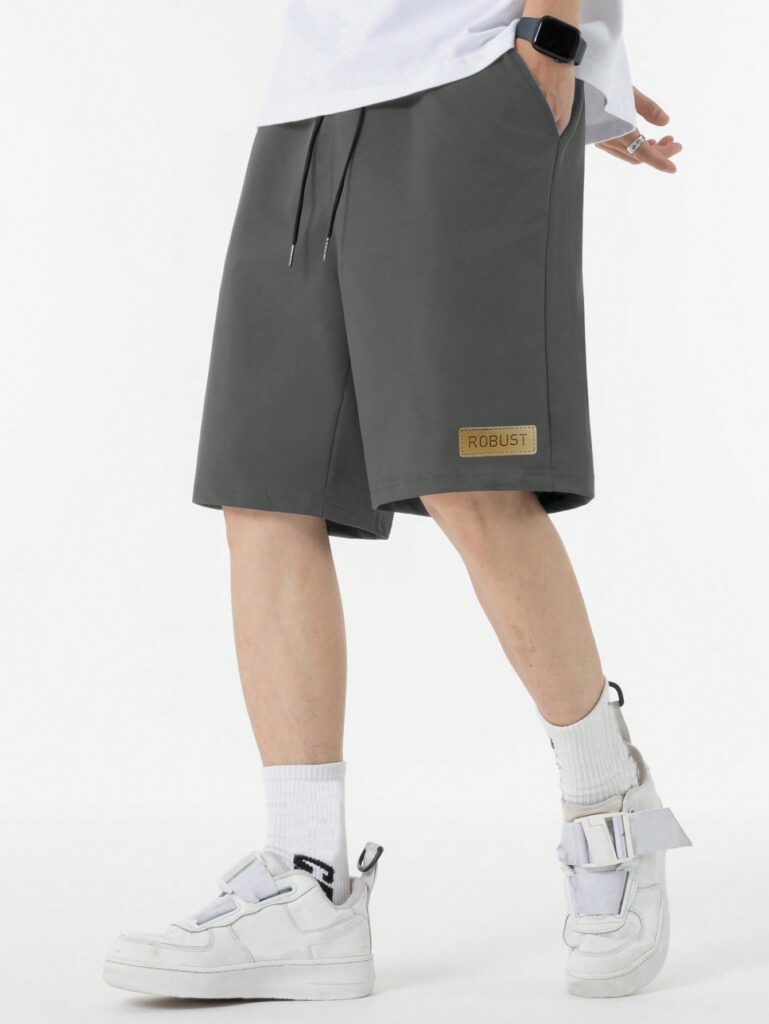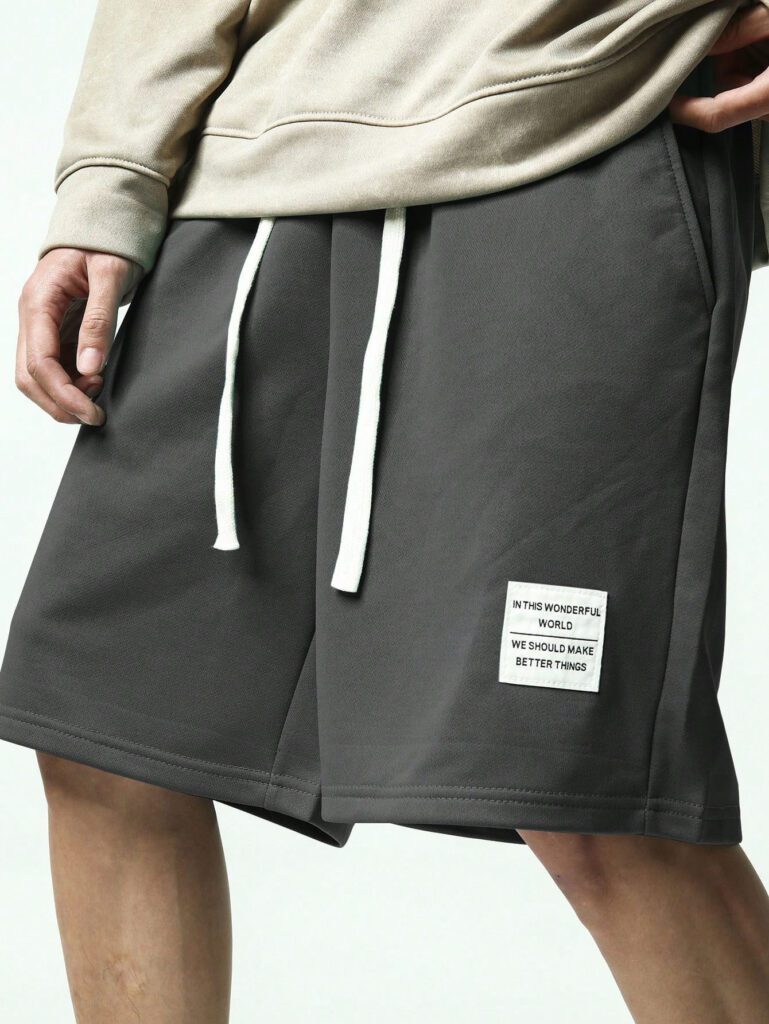 Manfinity Hypemode Shorts À Taille À Cordon De Serrage Pour Hommes À Lettres Patchées Et Coupe Ample