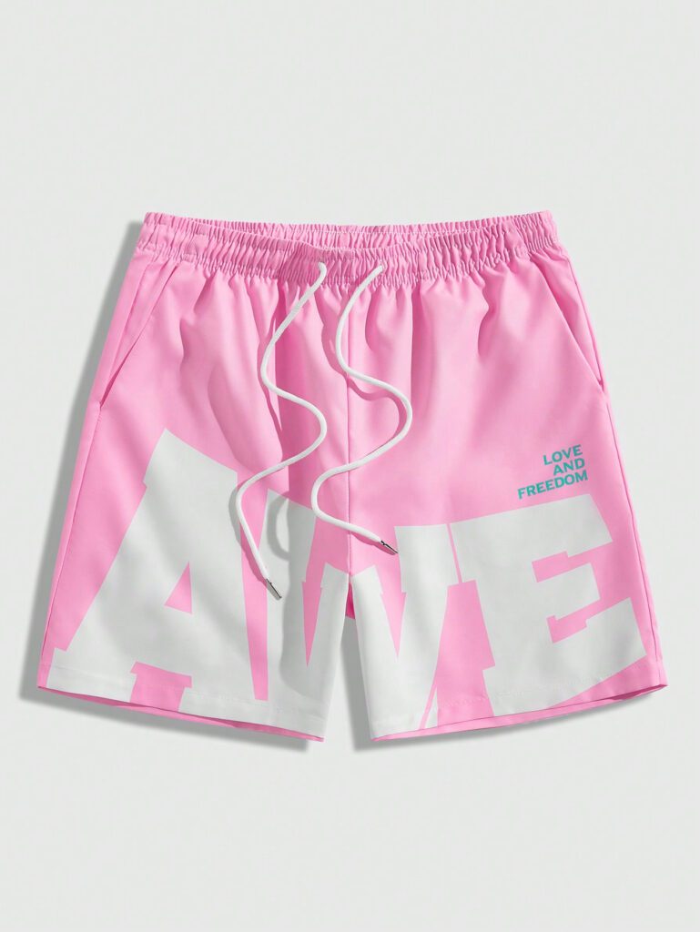 Manfinity Hypemode Shorts Pour Hommes À Taille Élastique À Cordon De Serrage Graphique De Lettre Et Coupe Lâche