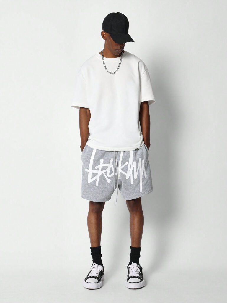 ROMWE Street Life Shorts avec slogan imprimé pour hommes, parfait pour le port quotidien au printemps et en été, école