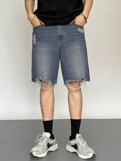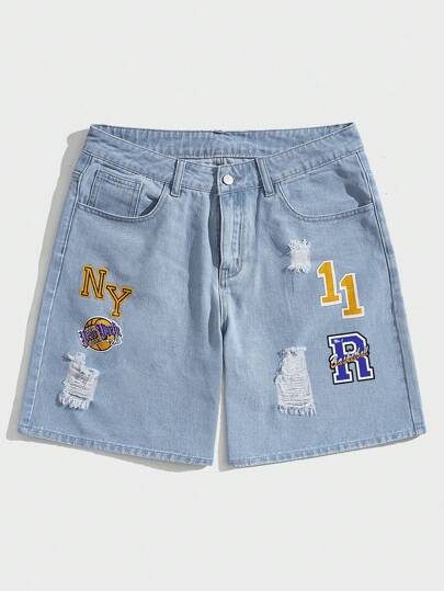 Manfinity LEGND Short en jean déchiré imprimé étoile pour hommes, jorts en jean graphique, short en jean gris foncé ample et décontracté pour fête, cadeau pour mari ou petit ami