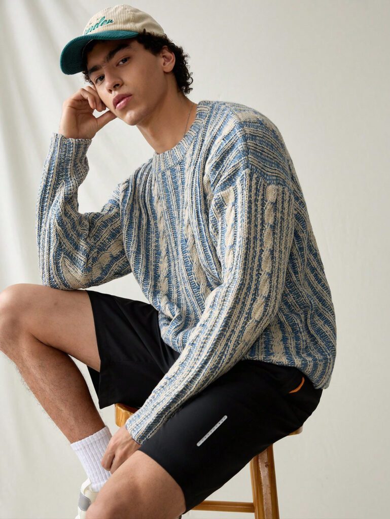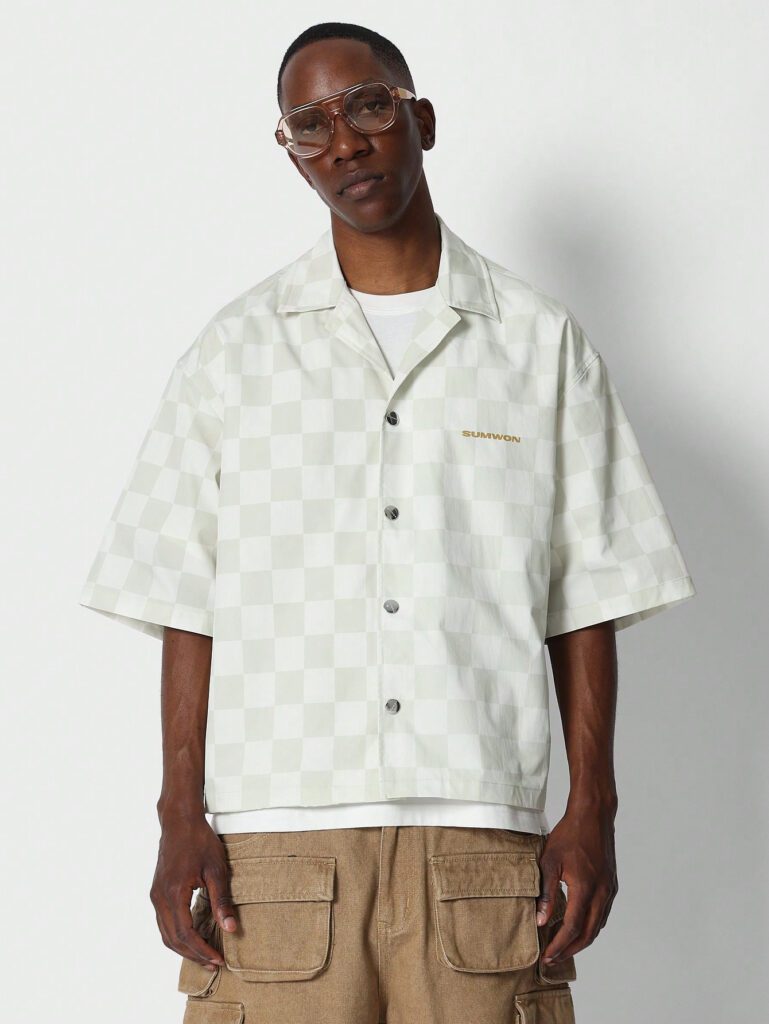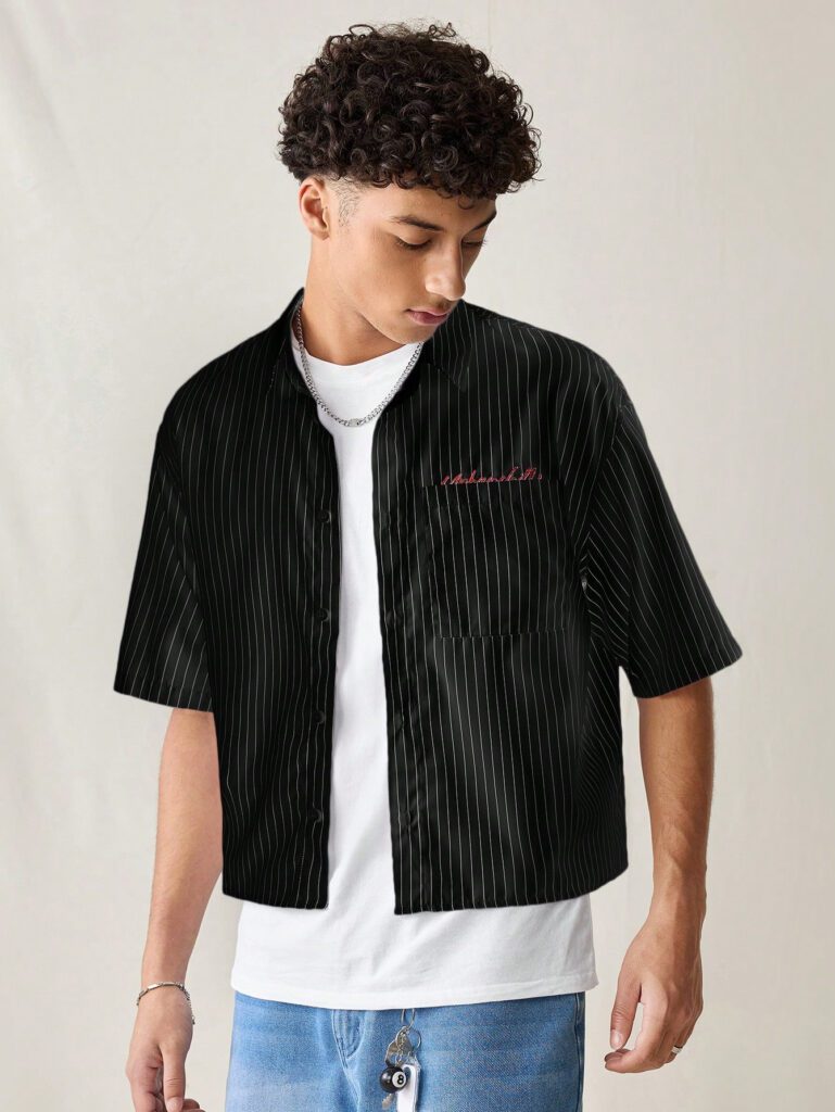 Manfinity UrbanChill Chemise courte décontractée pour hommes, rayée avec broderie, ample