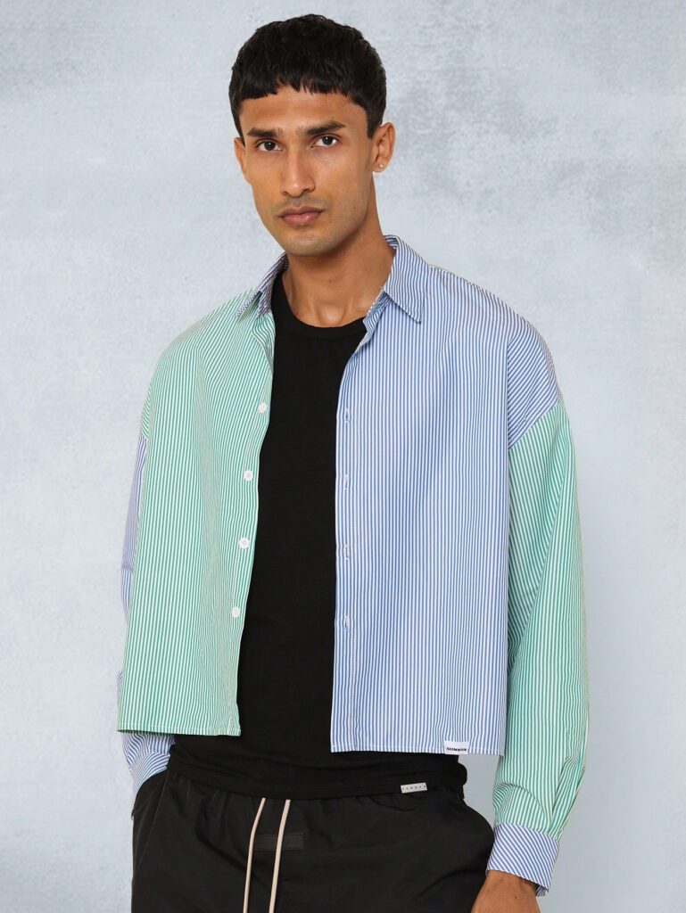 SUMWON Chemise à manches longues rayée avec bloc de couleur, recoupée